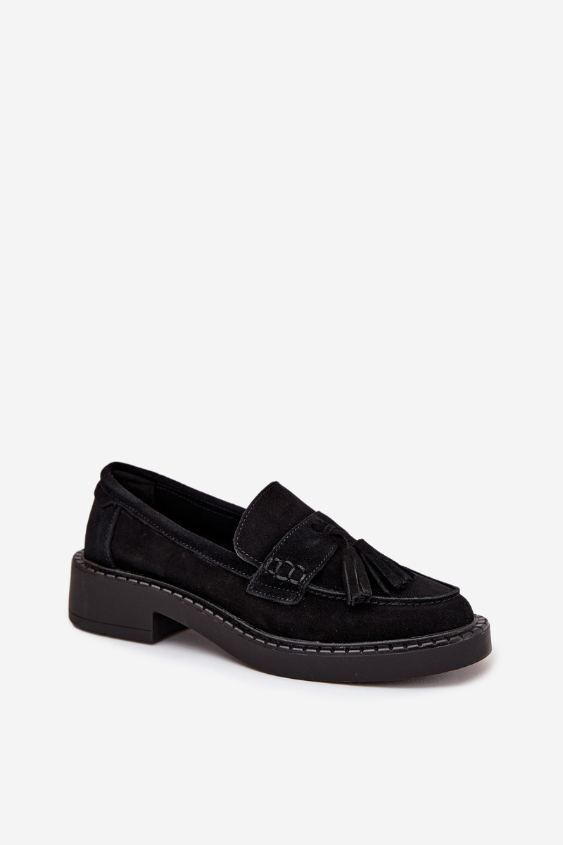 Dámské mokasíny D&A TW107 z eko semiše v černém provedení kombinují pohodlí s módním vzhledem. Jemné třásně na svršku dodávají botám stylový a trendy akcent. Měkký materiál a klasický střih mokasín zajišťují komfort při celodenním nošení. Tento model je vhodný pro každodenní nošení i formálnější příležitosti.