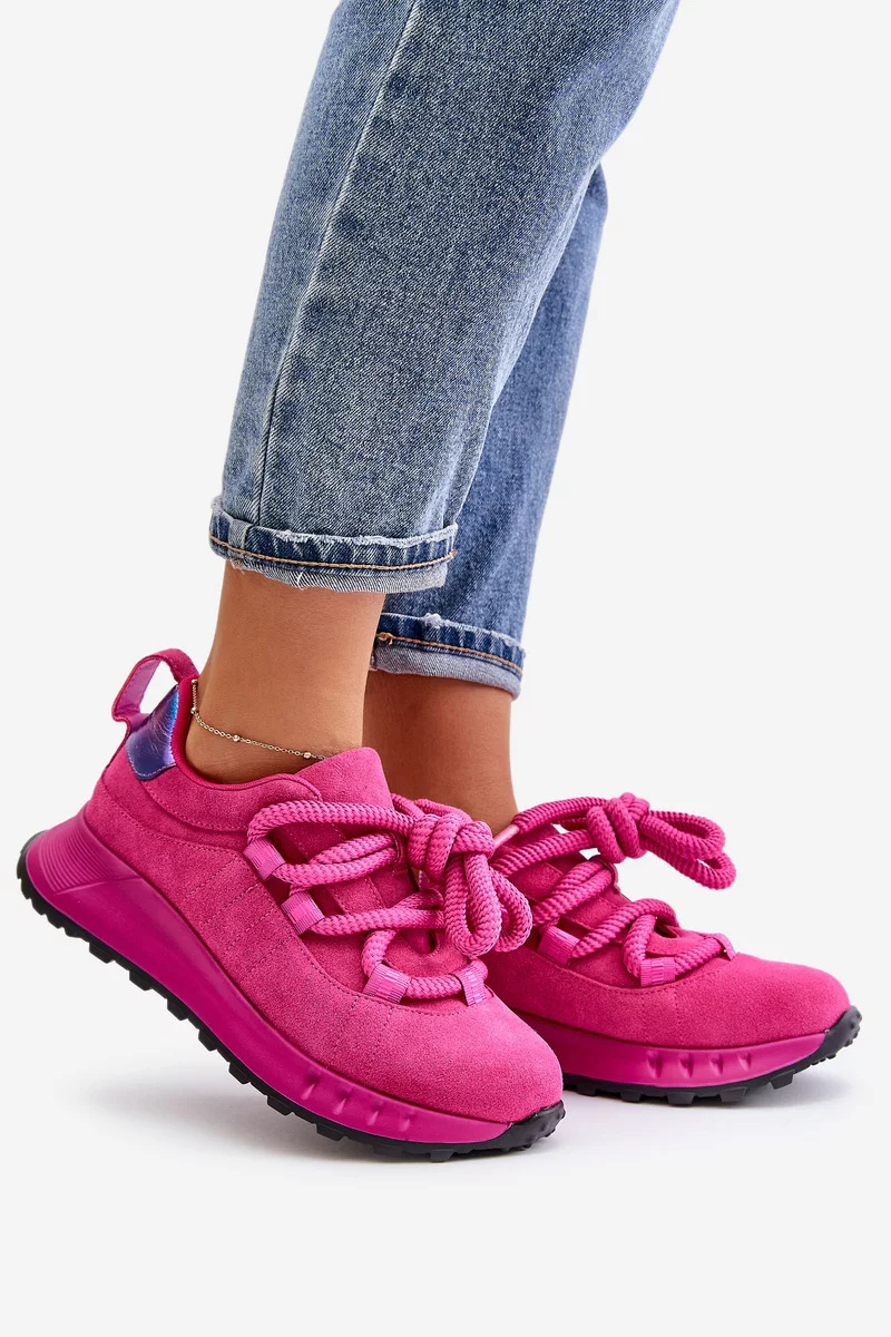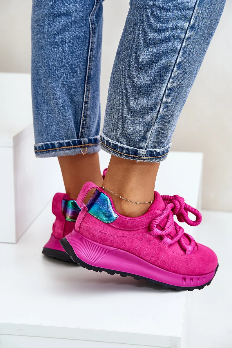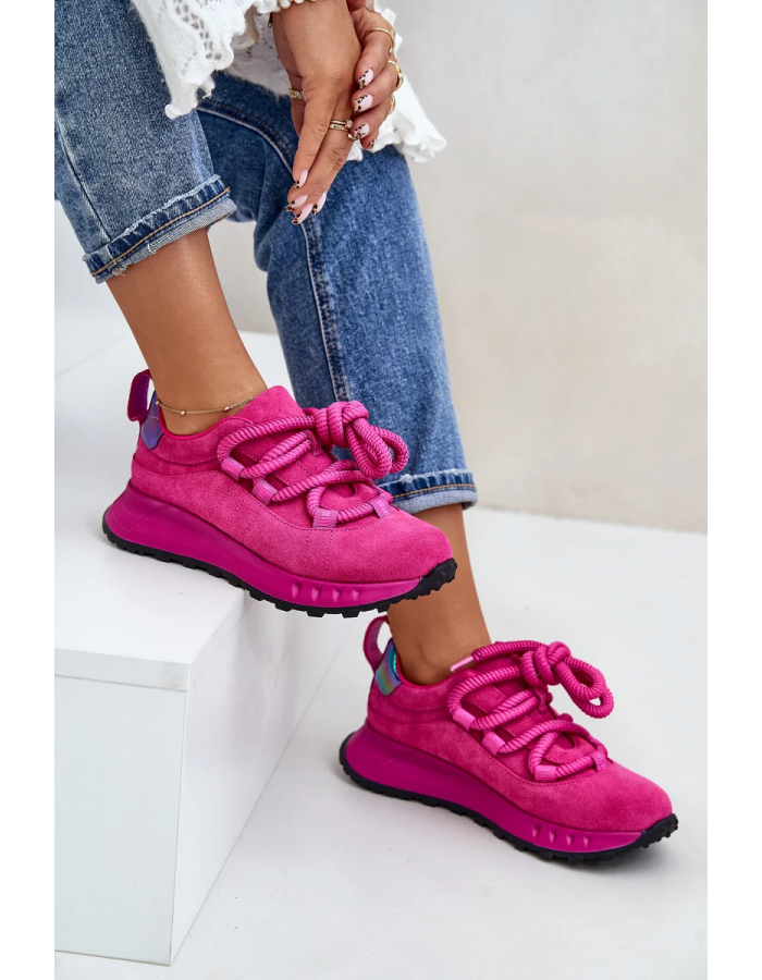 Dámské tenisky vyrobené z přírodní semiše. Osazené na platformě, která nejen dodává lehkost kroku, ale také zvedá postavu o několik centimetrů. Charakteristické pro tento model je silné šněrování, které přitahuje pozornost a dodává jedinečný vzhled. Ideálně se hodí pro každodenní stylizace. Vyberte si tyto tenisky, abyste vynikli v davu a užívali si pohodlí na každém kroku. Při výběru velikosti se prosím řiďte tabulkou velikostí.