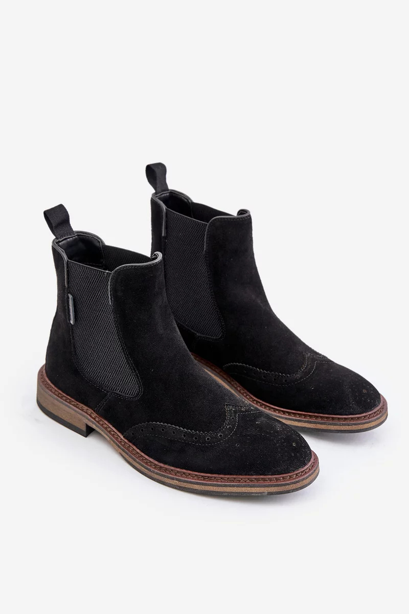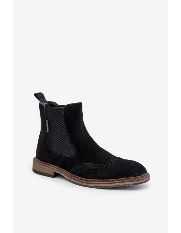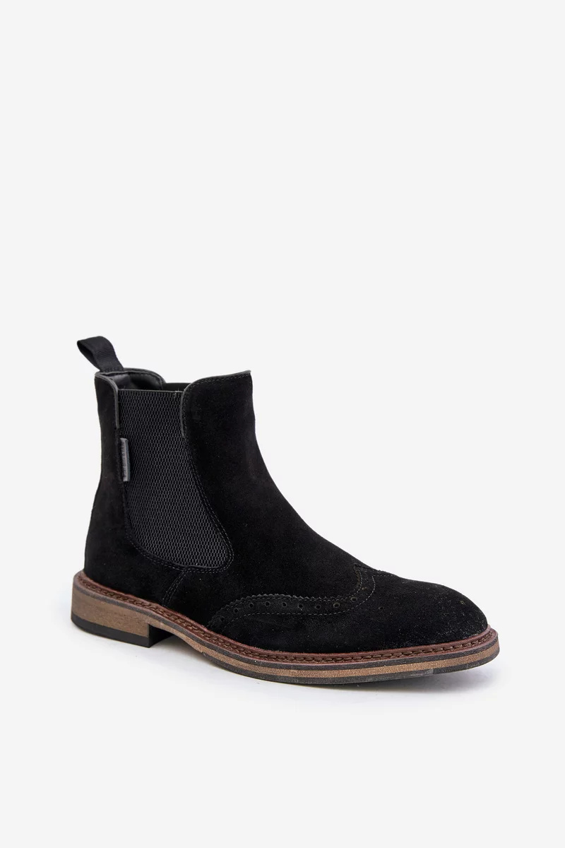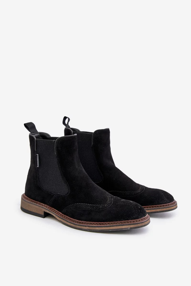 Semišové kotníkové boty chelsea pro muže od značky Big Star jsou spojením klasiky s moderním designem. Vyrobeno z přírodní semiše, která zajišťuje pohodlí a styl. Svršek je ozdoben jemným vzorem, který botám dodává charakter a odlišuje je od ostatních modelů. Ideální na podzimní a zimní dny, dokonale ladí jak s ležérními, tak i s elegantnějšími stylizacemi. Model zateplený obuvnickou plstí. Při výběru velikosti se prosím řiďte tabulkou velikostí.