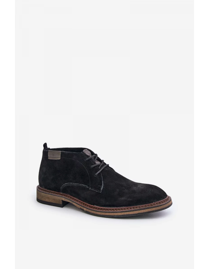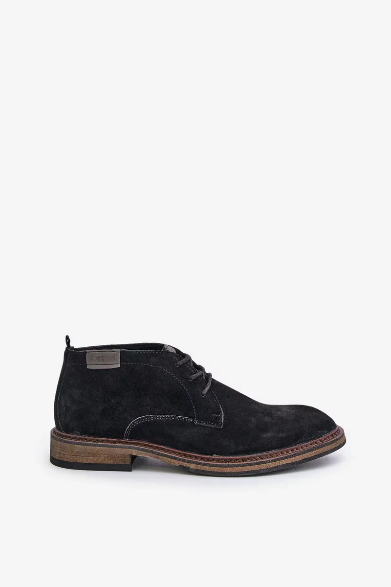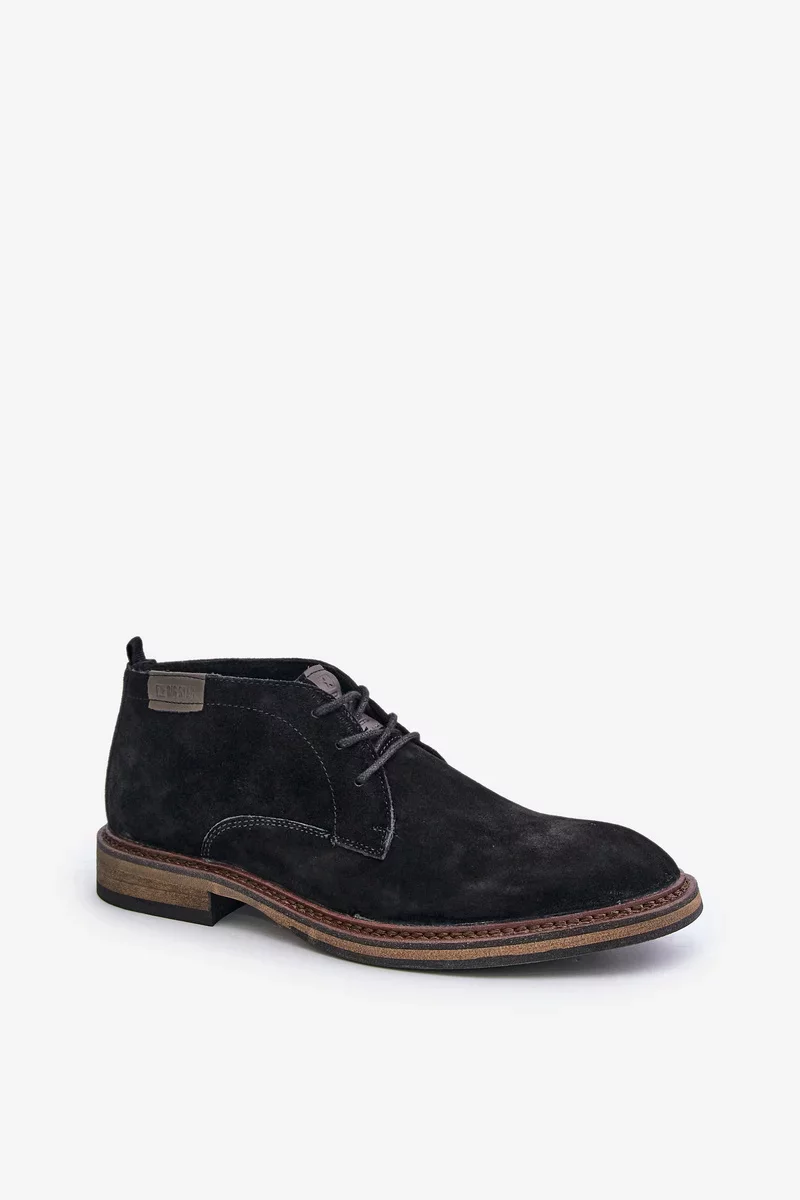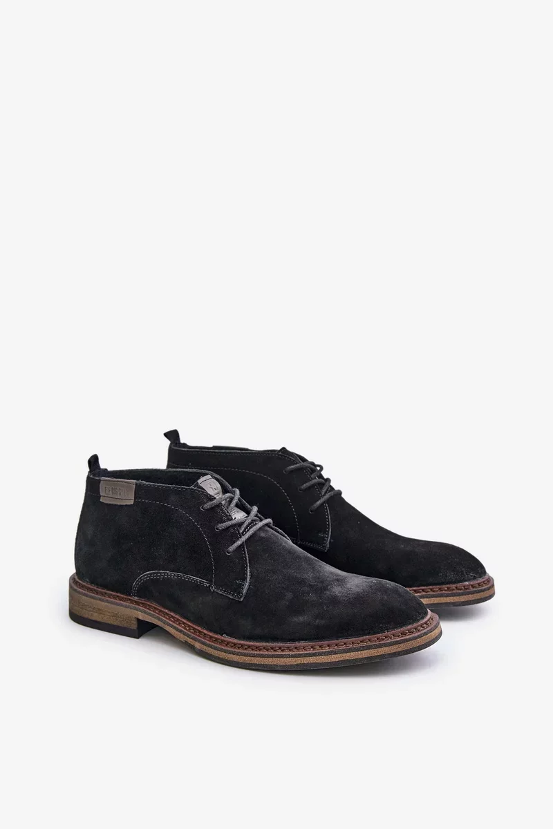 Šněrovací pánské kotníkové boty značky BIG STAR, vyrobené z přírodní semiše, se vyznačují svrškem sahajícím nad kotník a zaoblenými špičkami.