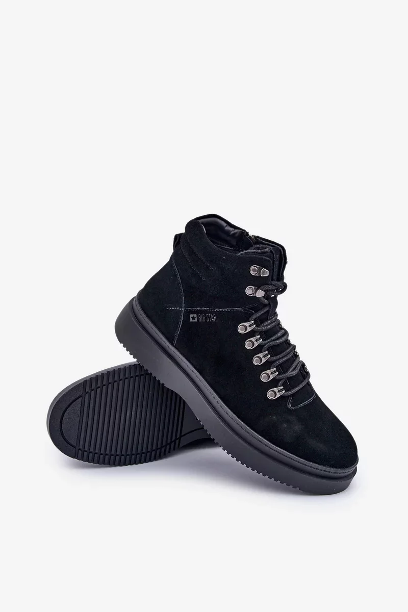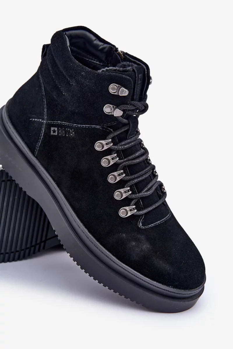 Pánské trapery Big Star vyrobené z přírodní semiše jsou skvělou volbou pro chladnější dny. Šněrování s přídavnými háčky usnadňuje přizpůsobení boty k noze. Zaoblené špičky poskytují dostatek prostoru pro prsty, díky čemuž jsou boty pohodlné po celý den. Vnitřek zateplený obuvnickou dekou zaručuje teplo a pohodlí i v zimních podmínkách. Tyto trapery se osvědčí jak na každodenní nošení, tak i při delších procházkách v chladnějším počasí. Při výběru velikosti se prosím řiďte tabulkou velikostí.