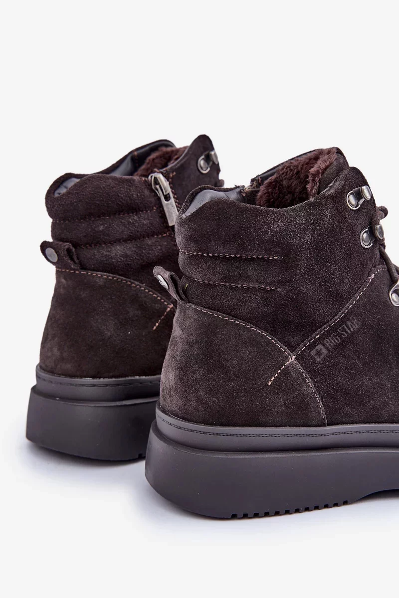 Pánské trapery Big Star vyrobené z přírodní semiše jsou skvělou volbou pro chladnější dny. Šněrování s přídavnými háčky usnadňuje přizpůsobení boty k noze. Zaoblené špičky poskytují dostatek prostoru pro prsty, díky čemuž jsou boty pohodlné po celý den. Vnitřek zateplený obuvnickou dekou zaručuje teplo a pohodlí i v zimních podmínkách. Tyto trapery se osvědčí jak na každodenní nošení, tak i při delších procházkách v chladnějším počasí. Při výběru velikosti se prosím řiďte tabulkou velikostí.