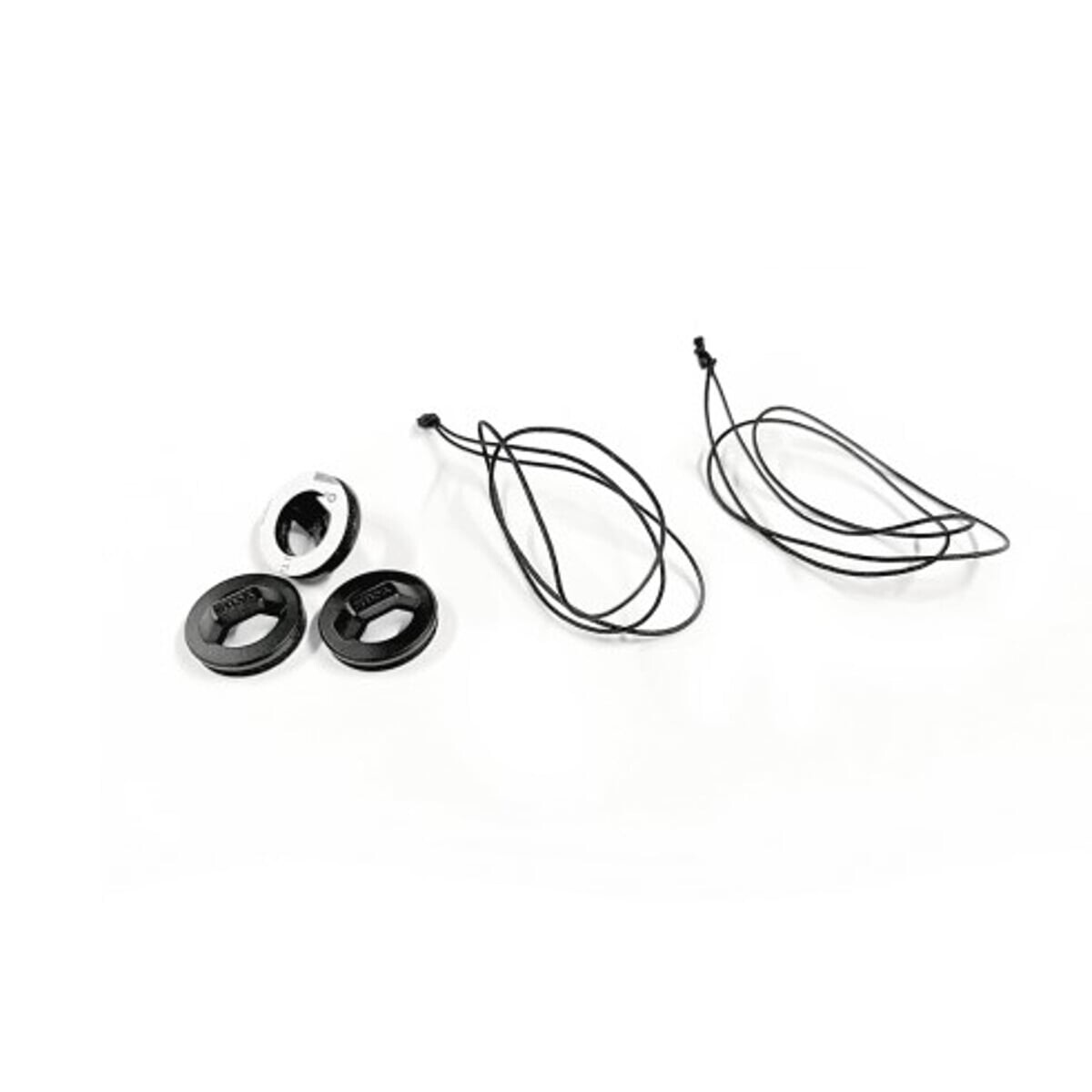 Set zabraňující ztrátě reflektoru a baterie umístěných na helmě. Obsahuje tři plastové příchytky s oboustrannou lepící páskou 3M a dvě oka dlouhá 20cm.