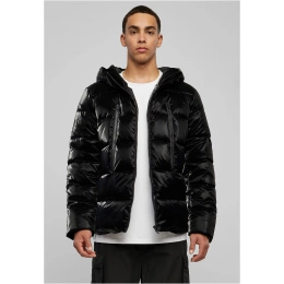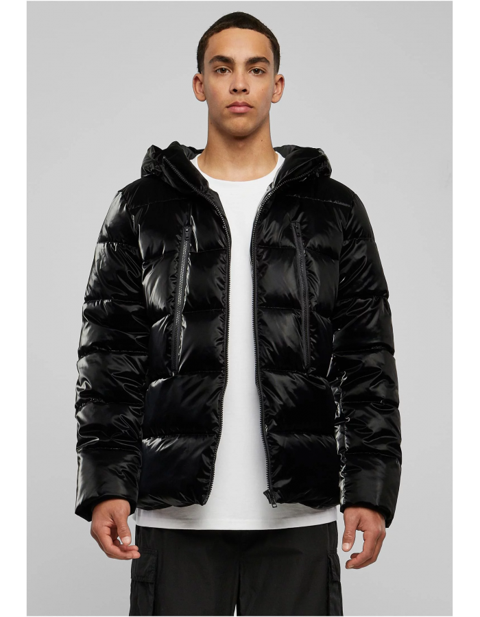Pánská nafukovací bunda vytváří poutavý styl díky silnému prošívání a také díky svému třpytivému a obzvláště pevnému vnějšímu materiálu ve vzhledu žraločí kůže. Je náročně podšitá taftem, má boční kapsy na zip, vnitřní kapsu a přední zip. Kapuce pánské bundy i spodní lem jsou nastavitelné pomocí elastických šňůrek se zarážkou. Žebrované manžety dotvářejí styl a střih je pravidelný.