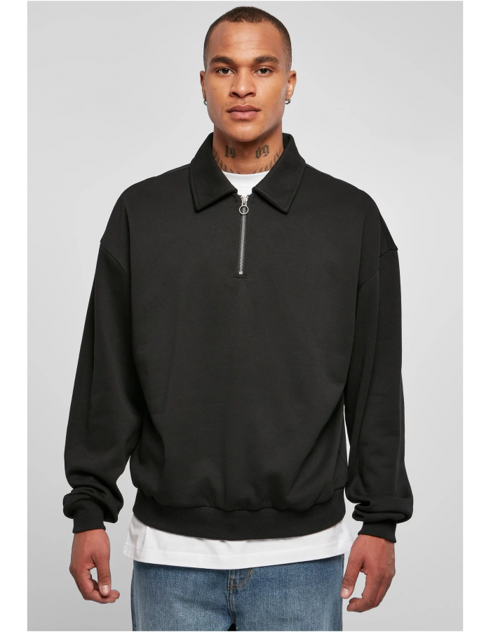 Pánská mikina nabízí jak límec s klopou na zip, tak i trendy oversize střih se spadlými rameny a extra dlouhými rukávy. Manžety a lem jsou žebrované a použitá látka je směs bavlny a polyesteru, která zajišťuje optimální pohodlí při nošení.