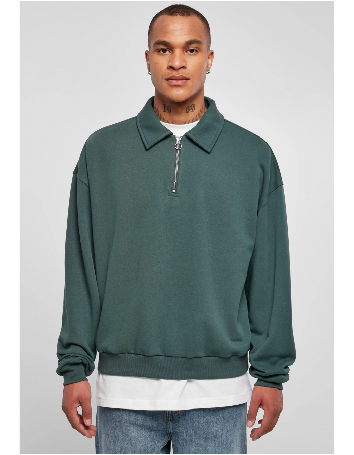 Pánská mikina nabízí jak límec s klopou na zip, tak i trendy oversize střih se spadlými rameny a extra dlouhými rukávy. Manžety a lem jsou žebrované a použitá látka je směs bavlny a polyesteru, která zajišťuje optimální pohodlí při nošení.
