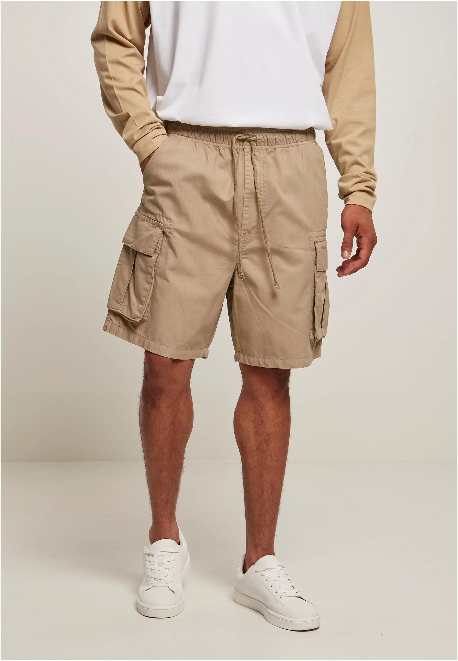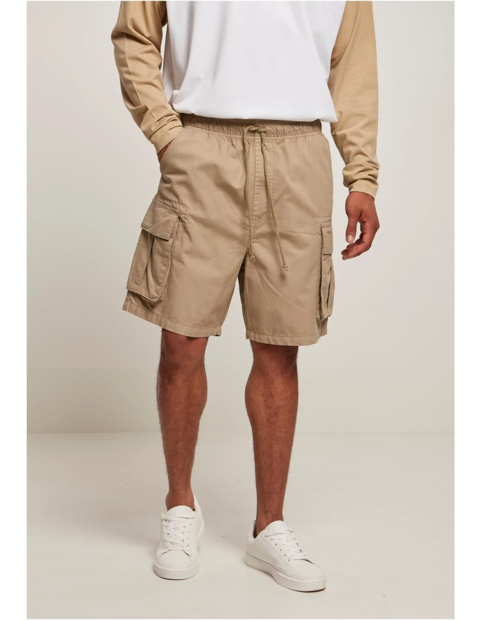 Sportovní a funkční pánské cargo šortky se šesti kapsami – boční kapsy, našité cargo kapsy se suchým zipem na stehnech i zadní kapsy. Pro individuální nastavení velikosti je přidán elastický pas se stahovacími šňůrkami. Moucha vespod je jen falešná. Pohodlné šortky mají pravidelný střih a jsou vyrobeny z robustního bavlněného kepru.