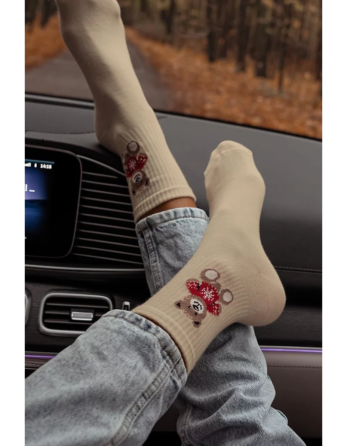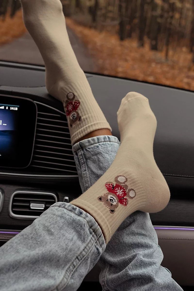 Kolorowe skarpety w modnych wzorach i kolorach. Idealnie dopasowują się do stóp i zapewniają wysoki komfort noszenia. Doskonale sprawdzą się w codziennych stylizacjach.