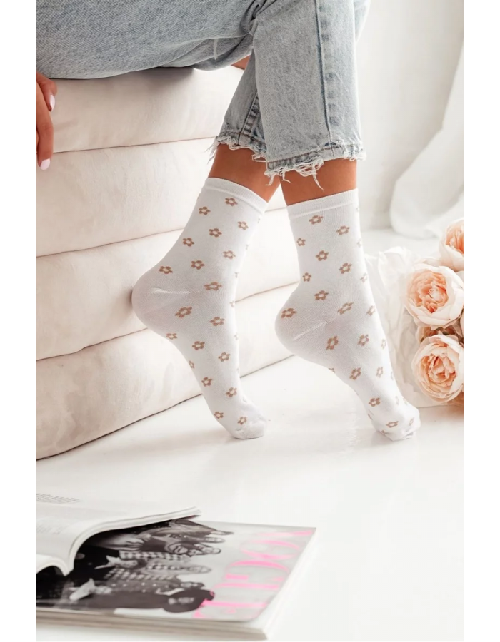 Skarpetki Damskie W Drobne Kwiatuszki Białe Velikost: 37-41