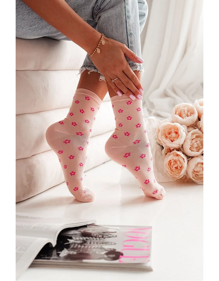 Skarpetki Damskie W Drobne Kwiatuszki Brzoskwiniowe Velikost: 37-41