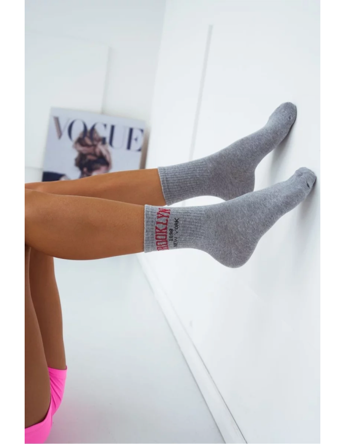 Skarpetki Damskie Z Napisem Brooklyn Szare Velikost: 37-41