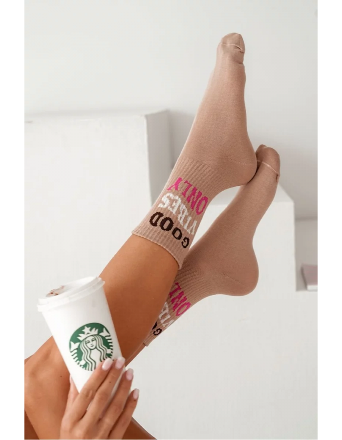 Skarpetki Damskie Z Napisem Good Vibes Only Beżowe Velikost: 37-41