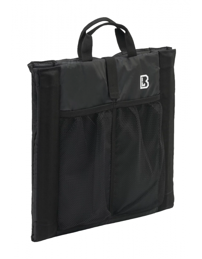 Toto skládací sedadlo, vybavené dvěma držadly a suchým zipem, lze nosit jako tašku a je vždy připraveno, když si budete chtít na chvíli sednout. Po stranách nabízí dvě praktické síťované kapsy pro uložení nápojů nebo vybavení. Po nastavení nabízí pohodlné a měkké sedadlo a lehce polstrované opěradlo, jehož úhel lze dokonce nastavit. Robustní polyesterový materiál se snadno čistí a váží jen necelých 400 gramů. Sedák má rozměr 40 x 38 x 3 centimetry. Design završuje malé logo Brandit.