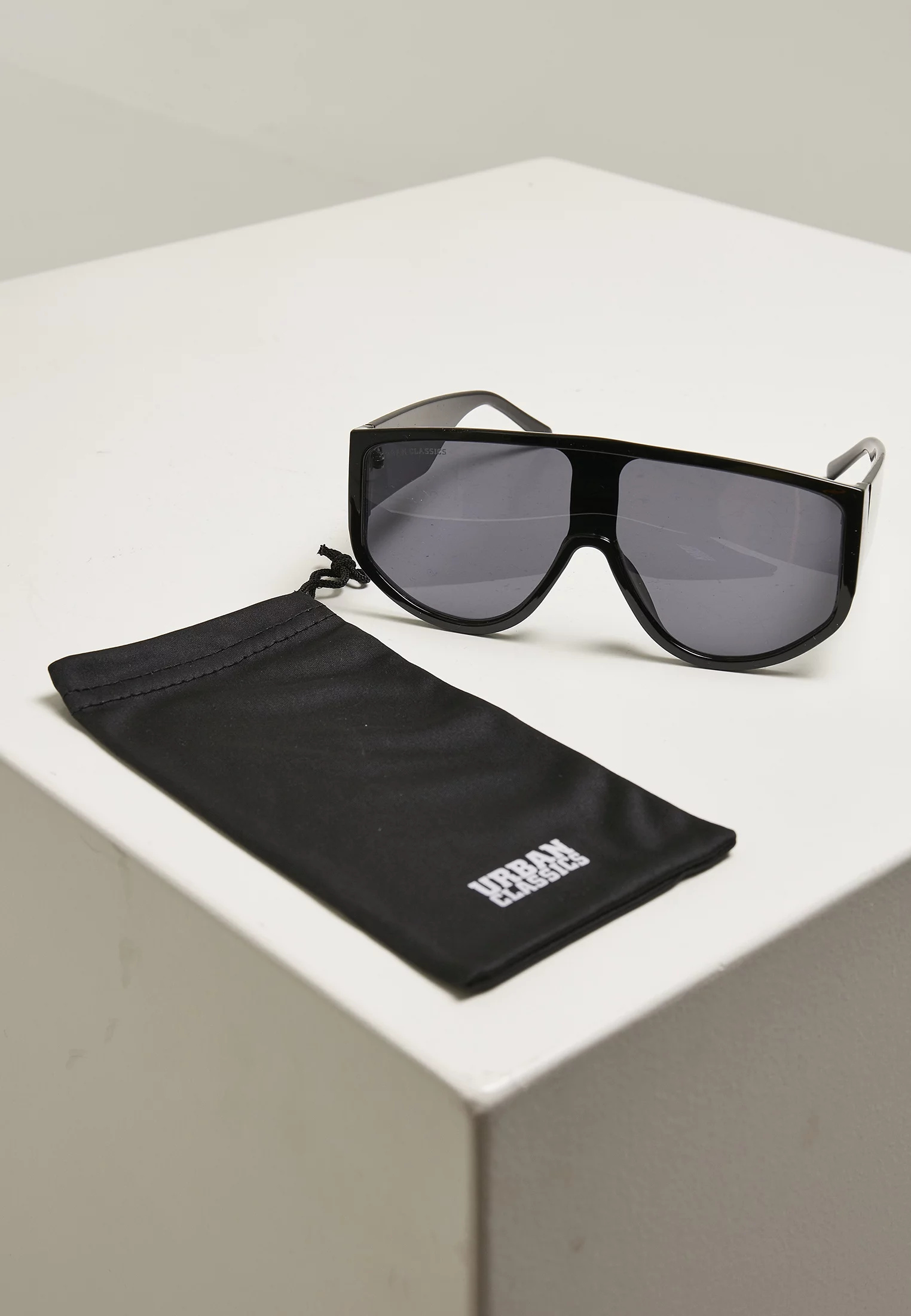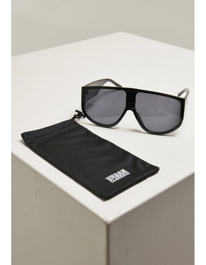 Extravagantní a nápadné sluneční brýle s velkými, hluboce protaženými čočkami a rovnou oblastí obočí, které vychází ze sportovního tvaru štítu. Hřbet nosu je široký, stejně jako rovné spánky. Brýle mají odpovídající pouzdro se stahovacím uzávěrem a potiskem Urban Classics. Jsou vyrobeny z polykarbonátu a mědi.
