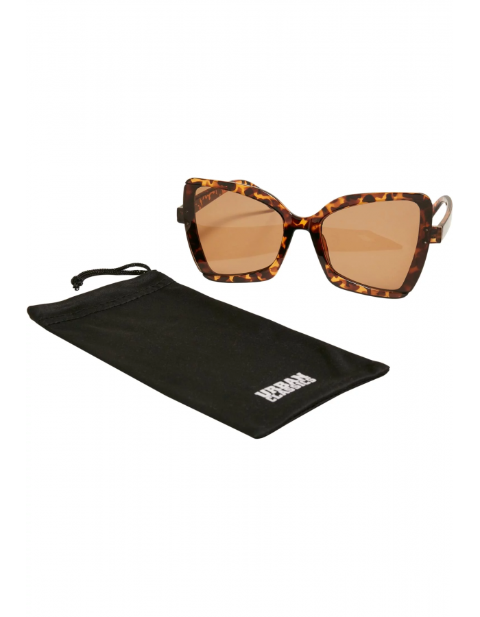 Tyto přesvědčivé hranaté sluneční brýle jsou vybaveny plastovým rámem a vykazují dynamické vyrovnání jejich horní a spodní linie. Strany jsou rovné a velká tónovaná skla nabízejí spolehlivou ochranu UV 400. Trendy doplněk je vyroben z polykarbonátu a poskytuje ochranný kryt se stahovací šňůrkou a potiskem loga Urban Classics.