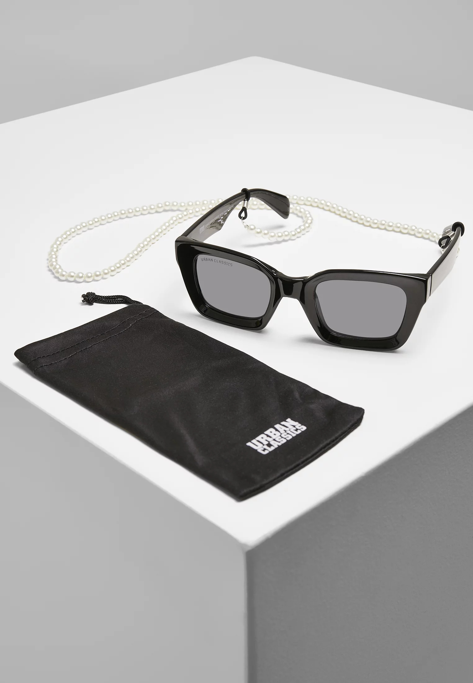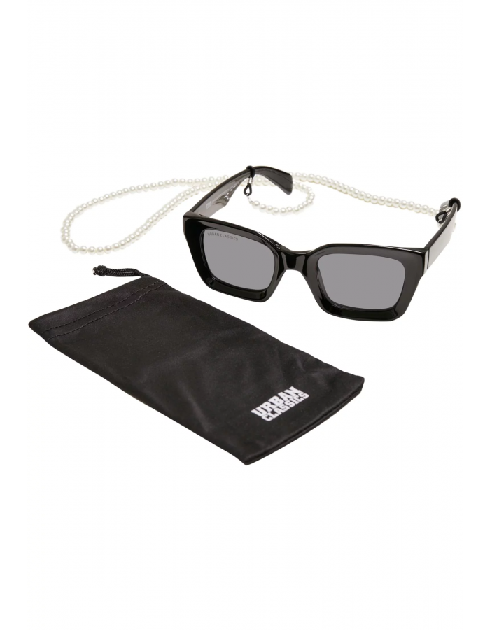 Hranatý rám a čočky a výrazná část obočí promění tyto sluneční brýle Urban Classics v elegantní a moderní doplněk, který doplňuje bílý perlový řetízek. Široké zkosené strany a pevná ochrana očí UV 400 doplňují sluneční brýle. Jsou vyrobeny z polykarbonátu a skla.