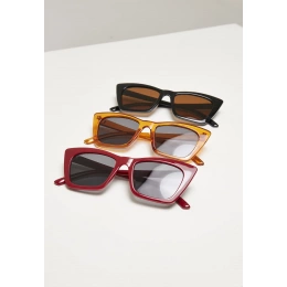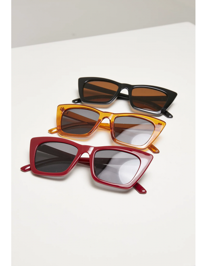 Tato trojitá sada nabízí tři klasické páry slunečních brýlí s různými barevnými možnostmi. Tónované obdélníkové čočky jsou zvýrazněny mírným vychýlením horních rohů, inspirovaným tvarem kočičího oka. Souvislý rám střední šířky harmonicky obklopuje čočky. Použitým materiálem slunečních brýlí Urban Classics je polykarbonát a měď.