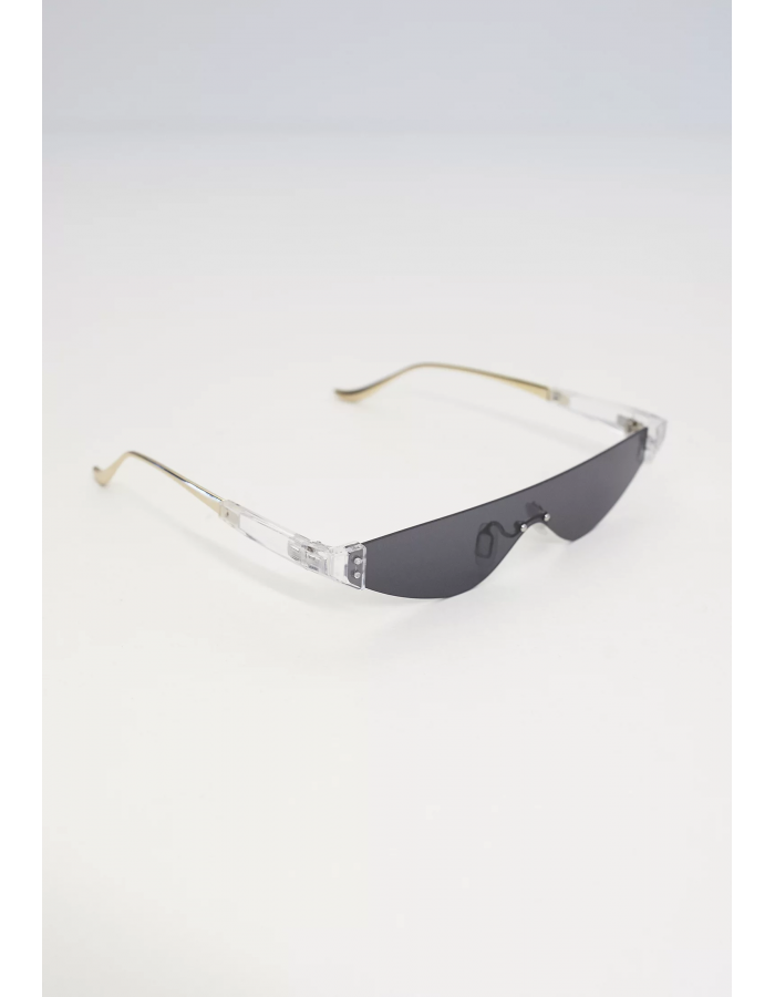 Pro módní lidi, kteří hledají něco speciálního pro letošní léto. Tyto sluneční brýle potěší jedinečnou kombinací tvaru a materiálu. Průběžné tónované sklo je úzké a bezrámové. Rovné stranice jsou částečně vyrobeny z průhledného polykarbonátu a končí v jemném zlatém tónu. Zatímco flexibilní nosní vycpávky poskytují ideální pohodlí při nošení, UV 400 a filtr kategorie 3 poskytují ochranu očí před sluncem.
