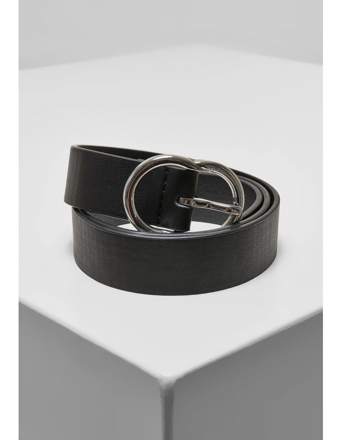 Funkční a úzký pásek se skládá z jednoduchého těla z umělé kůže a dává svůj stylový akcent pomocí kovové spony ve tvaru dvojitého kroužku. Je vyrobena z polyesteru a je k dispozici ve čtyřech různých délkách: 95 cm, 105 cm, 115 cm a 125 cm.