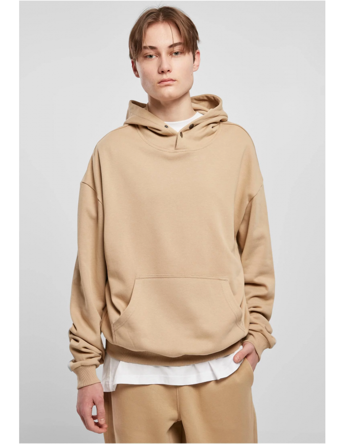 Tato pánská mikina s kapucí je vyrobena z měkkého froté a v módním oversize střihu se spadlými rameny a dlouhými rukávy je super pohodlným každodenním společníkem. Decentním stylovým detailem je kapuce s malými zapínacími knoflíky. Mikina má samozřejmě také klokaní kapsu a široké žebrované manžety na rukávech a lemu.