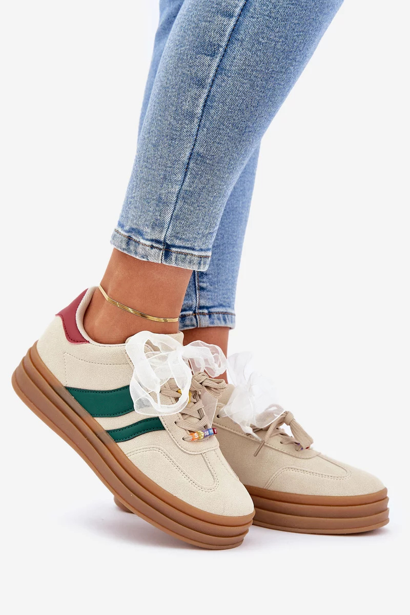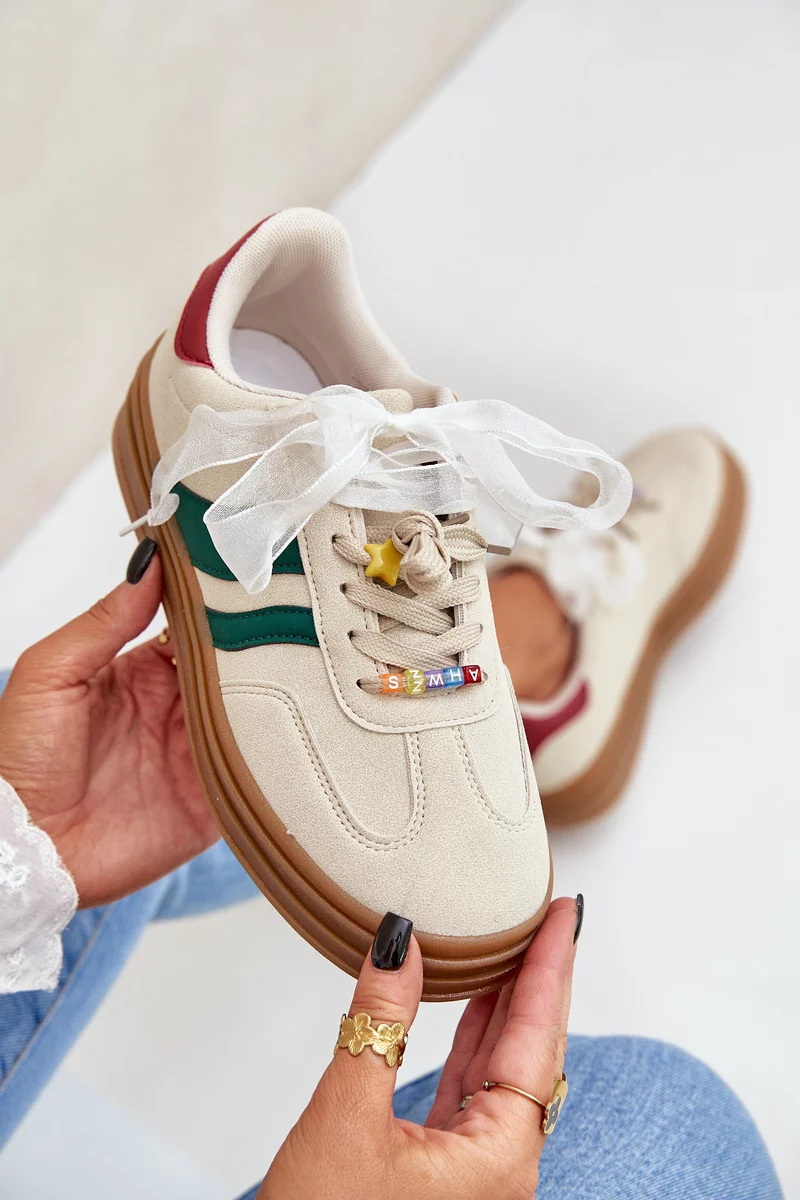 Modne sneakersy wykonane z eko zamszu to świetna propozycja dla miłośniczek wygody i stylowego wyglądu. Osadzone na platformie, nie tylko dodają kilku centymetrów wzrostu, ale także doskonale podkreślają nowoczesny charakter obuwia. Sznurowanie zostało urozmaicone uroczymi przypinkami, które nadają dziewczęcego uroku i oryginalności. Idealnie sprawdzą się zarówno w codziennych stylizacjach, jak i podczas spotkań z przyjaciółmi. Przy wyborze rozmiaru prosimy kierować tabelą rozmiarów.