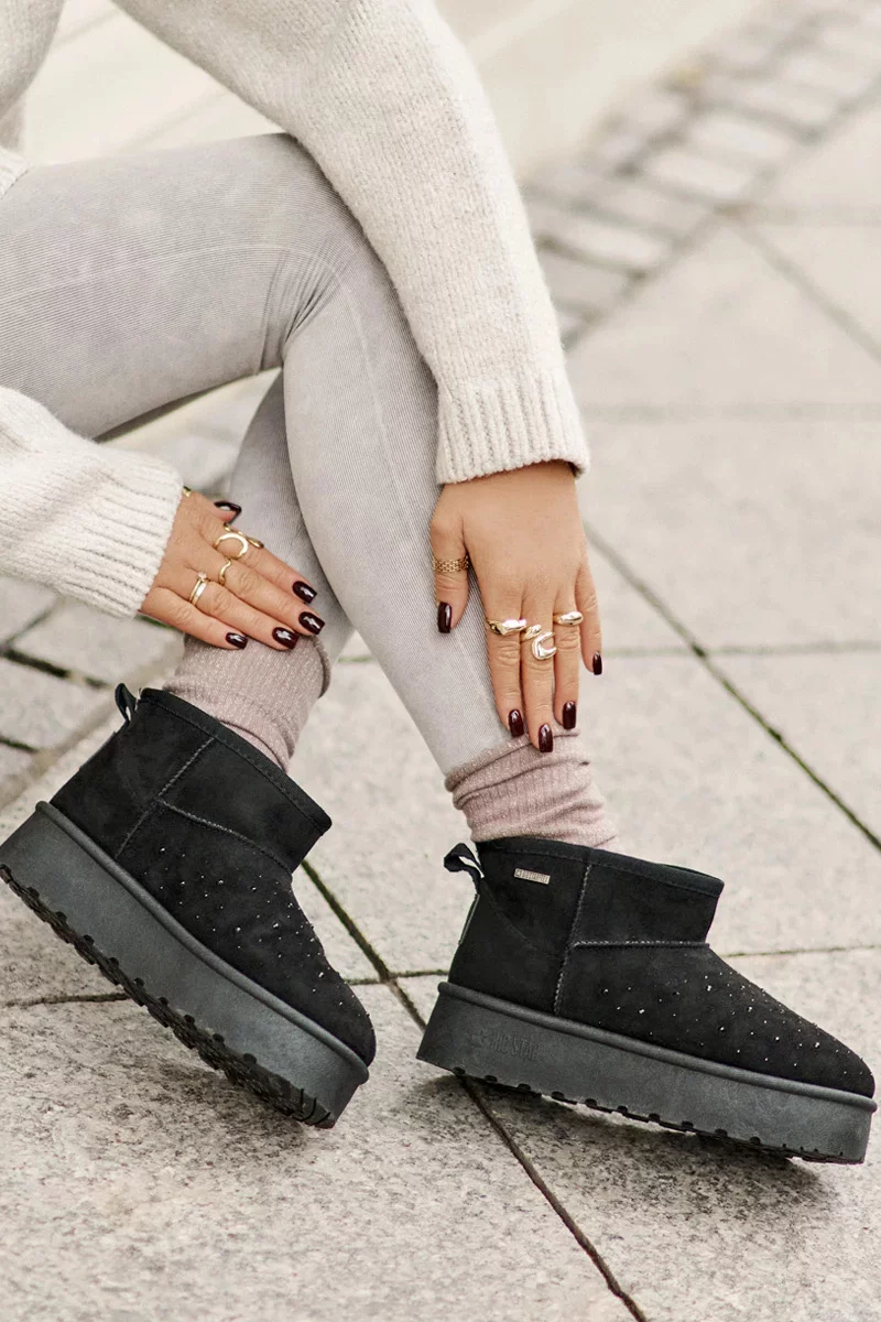 Sněhule s ozdobou na platformě Big Star Černé Velikost: 38