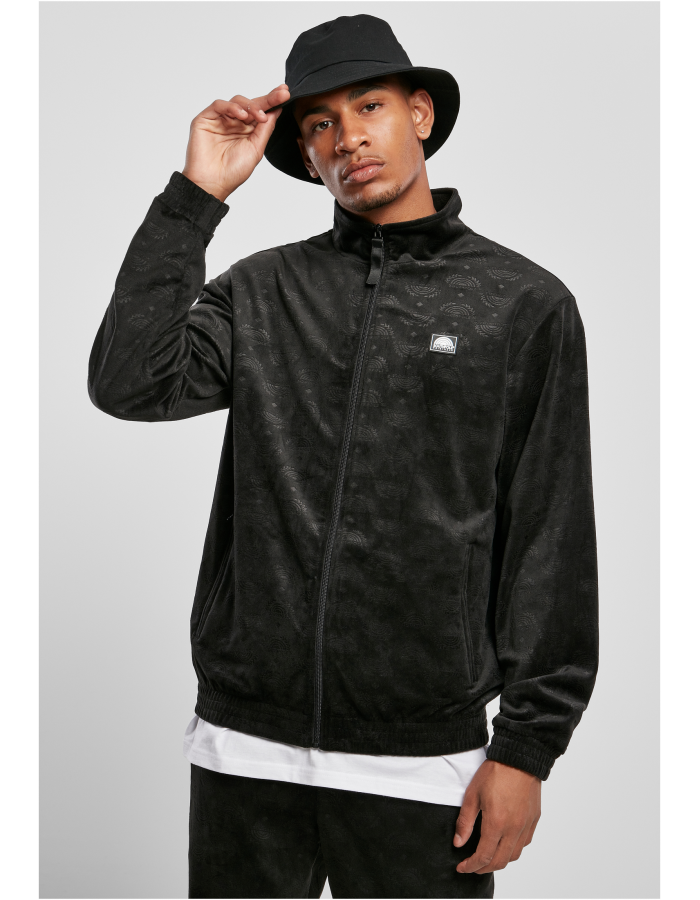 Extrémně ležérní pánská bunda značky Southpole zaměřená na materiál a značku. Měkký velur bundy má souvislé logo Southpole jako celoplošný potisk. Dále byla bunda vybavena průběžným zipem, bočními kapsami na zip a elastickými manžetami rukávů. Sametová bunda má volný střih.
