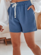 Damskie spodenki materiałowe o luźnym kroju i wysokim stanie to doskonała baza do tworzenia letnich stylizacji. Dzięki elastycznej gumce w pasie oraz troczkom z ozdobnymi końcówkami, świetnie dopasowują się do sylwetki. Dwie kieszenie z przodu dodają im casualowego charakteru. Wykonane z lekkiej tkaniny, sprawdzą się zarówno podczas spacerów po plaży, jak i w miejskim klimacie.