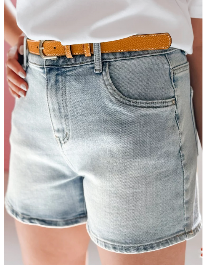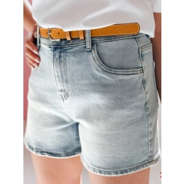 Spodenki jeansowe w klasycznym stylu to świetna propozycja na sezon wiosna-lato. Posiadają średni stan, zapięcie na guzik i suwak oraz ozdobne kieszenie. Ich luźniejszy krój daje komfort nawet w najcieplejsze dni, a w zestawie znajduje się stylowy pasek, który nadaje całości modowego szyku.To model, który sprawdzi się zarówno w letnie, jak i wiosenne dni.