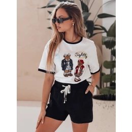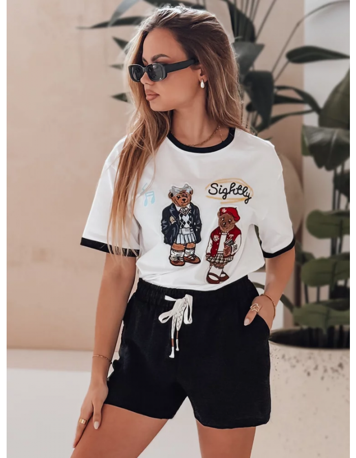 Spodenki damskie z materiału o delikatnej fakturze zachwycają prostotą i wakacyjnym klimatem. Wysoki stan oraz elastyczny pas gwarantują wygodę, a ozdobny sznurek dodaje całości oryginalnego charakteru. Uniwersalny fason świetnie komponuje się z topami, koszulami i sandałami. To model, który z łatwością można dopasować do codziennych stylizacji na lato.