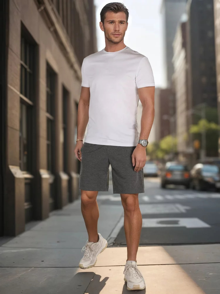 Klasyczne dresowe szorty męskie stworzone z myślą o wygodzie i codziennym stylu. Elastyczny pas, kieszenie boczne na suwak oraz lekkość materiału sprawiają, że to idealny wybór na letnie dni. Doskonałe zarówno na miasto, jak i na plażę czy wyjazd.