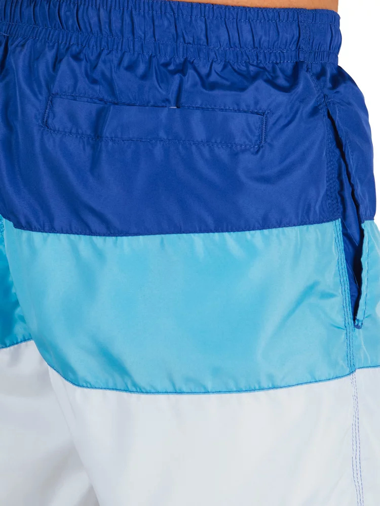 Męskie kąpielówki z elastycznym pasem i regulacją sznurkiem to wygodna propozycja na lato. Charakterystyczne pasy w trzech kolorach dodają im wyrazistości i stylowego, plażowego charakteru. Wygodne kieszenie boczne oraz tylna zapinana na rzep zapewniają funkcjonalność. Idealne do aktywnego wypoczynku na plaży i przy basenie.