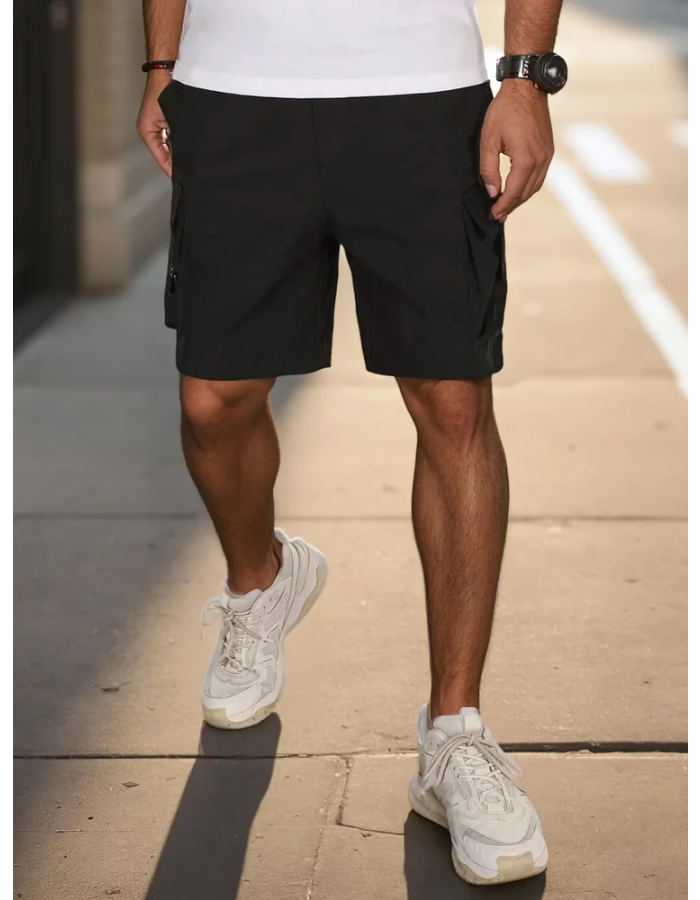 - Męskie spodenki materiałowe typu bojówki.