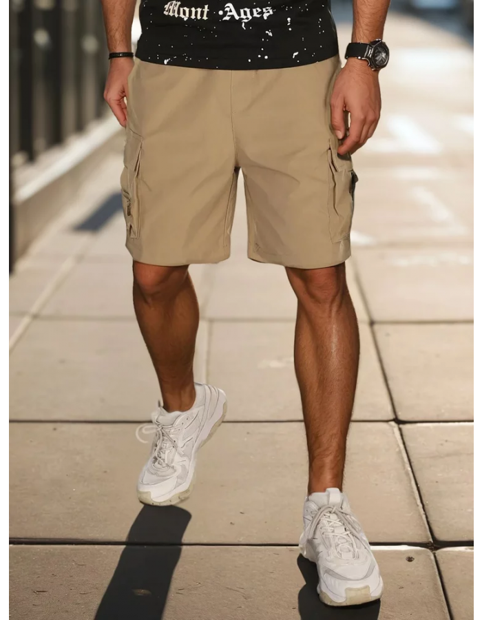 - Męskie spodenki materiałowe typu bojówki.