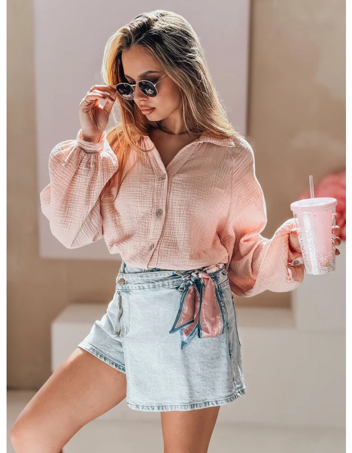 Jeansowe spódnico-spodenki to hit sezonu wiosna–lato. Dzięki przemyślanemu krojowi z ukrytymi spodenkami model łączy kobiecy wygląd z wygodą noszenia. Ozdobne wiązanie na boku przyciąga uwagę i podkreśla modowy charakter stylizacji. Wysoki stan modeluje sylwetkę i zapewnia idealne dopasowanie. Świetna baza do codziennych, letnich zestawień.