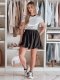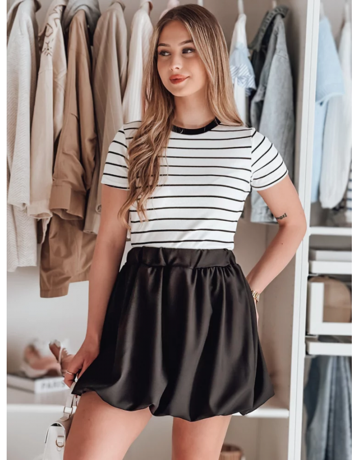 Spódniczka mini o efektownym kroju bombki, który nadaje sylwetce subtelnej objętości i dziewczęcego wdzięku. Uniwersalny rozmiar pasuje od XS do L. Elastyczna gumka w pasie umożliwia idealne dopasowanie, a brak podszewki sprawia, że model jest przewiewny i lekki. Pasuje zarówno do sportowego looku z sneakersami, jak i bardziej eleganckich stylizacji z balerinami czy szpilkami. Idealna baza dla modnych i wygodnych outfitów.