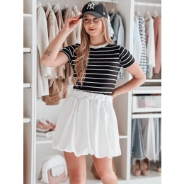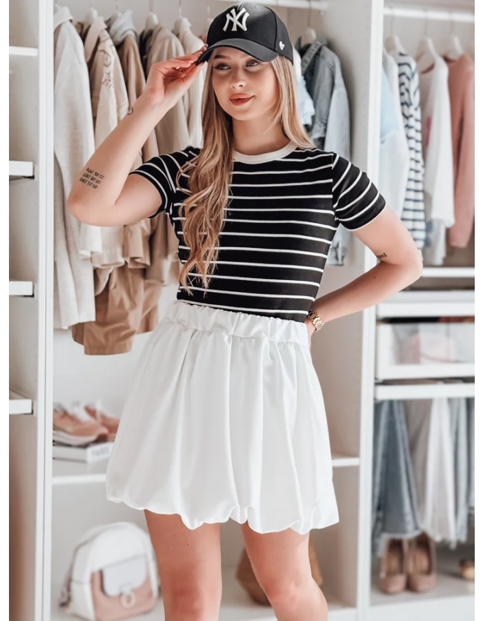 Spódniczka mini o efektownym kroju bombki, który nadaje sylwetce subtelnej objętości i dziewczęcego wdzięku. Uniwersalny rozmiar pasuje od XS do L. Elastyczna gumka w pasie umożliwia idealne dopasowanie, a brak podszewki sprawia, że model jest przewiewny i lekki. Pasuje zarówno do sportowego looku z sneakersami, jak i bardziej eleganckich stylizacji z balerinami czy szpilkami. Idealna baza dla modnych i wygodnych outfitów.