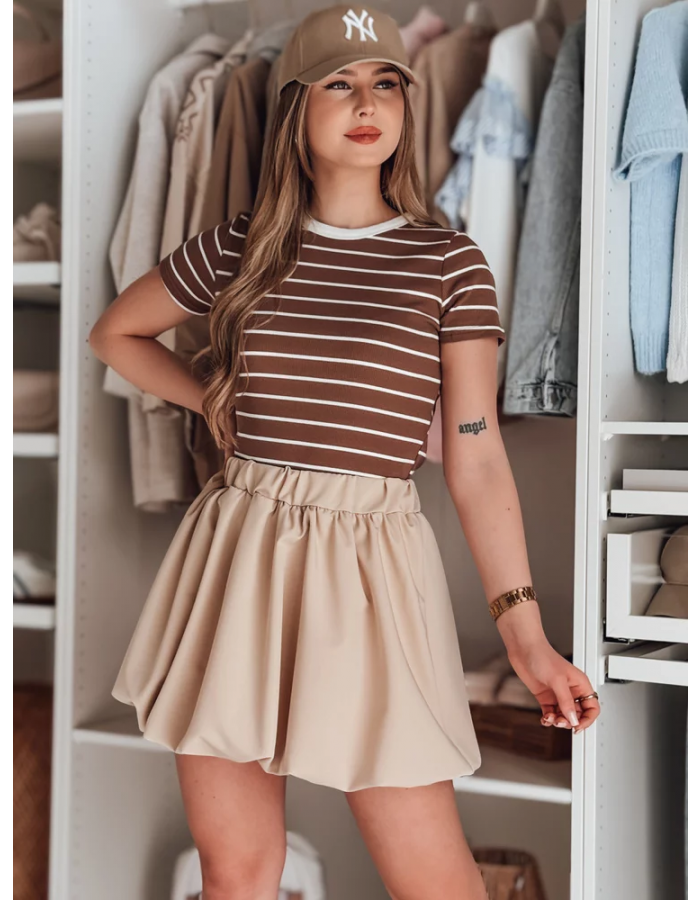 Spódniczka mini o efektownym kroju bombki, który nadaje sylwetce subtelnej objętości i dziewczęcego wdzięku. Uniwersalny rozmiar pasuje od XS do L. Elastyczna gumka w pasie umożliwia idealne dopasowanie, a brak podszewki sprawia, że model jest przewiewny i lekki. Pasuje zarówno do sportowego looku z sneakersami, jak i bardziej eleganckich stylizacji z balerinami czy szpilkami. Idealna baza dla modnych i wygodnych outfitów.