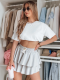 Spódniczka mini z falbanami to must-have w każdej garderobie. Elastyczna talia dopasowuje się do sylwetki, a warstwowe falbanki dodają uroku i dynamiki ruchu. Uniwersalny rozmiar pasuje od XS do L. Można ją nosić zarówno w casualowych zestawach z trampkami, jak i w bardziej eleganckim wydaniu z botkami. To wszechstronny model, który sprawdzi się na wiele okazji.