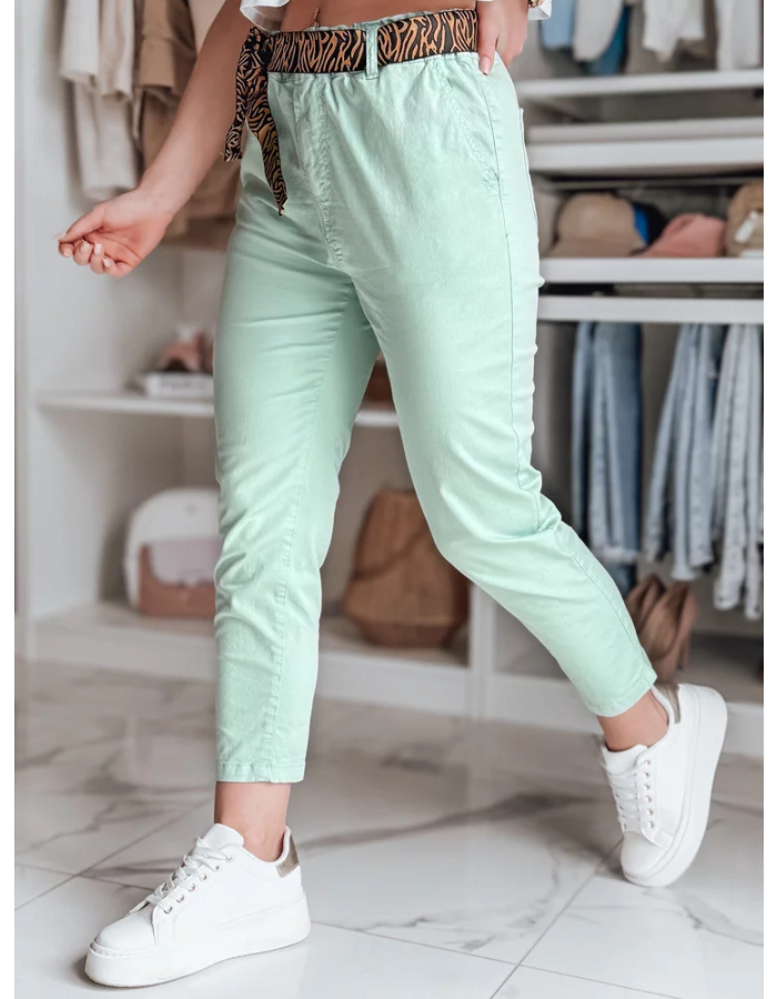 Spodnie damskie z paskiem MADELINA uy2624 miętowe