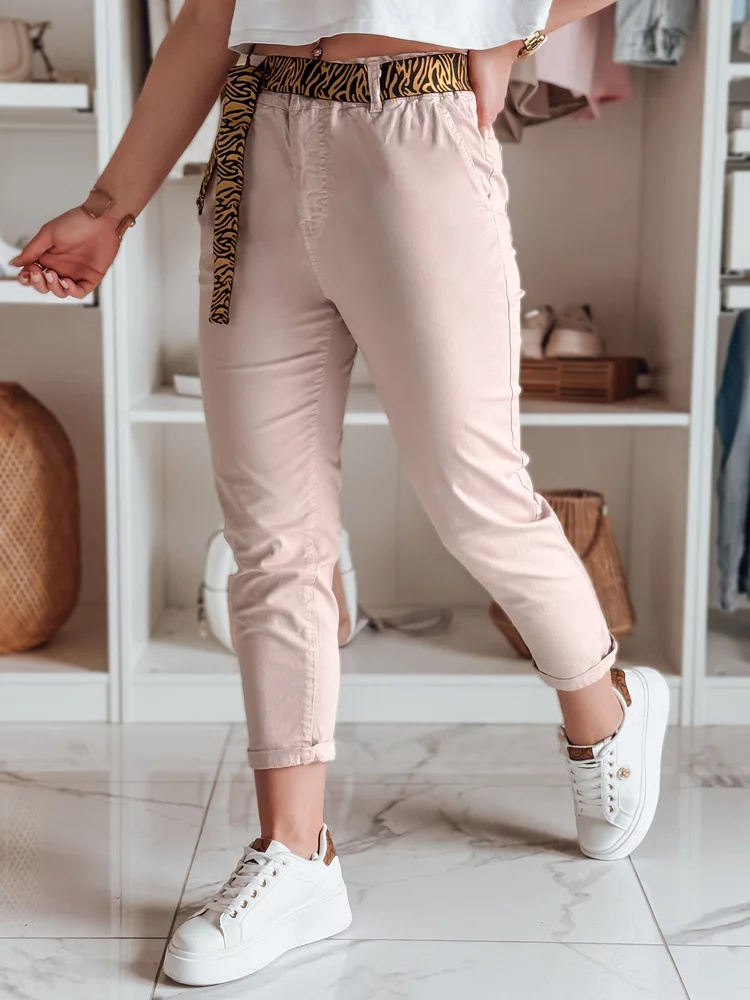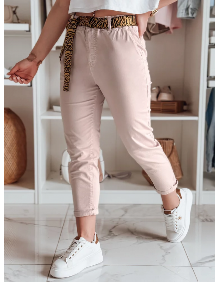 Spodnie damskie z paskiem MADELINA uy2627 różowe
