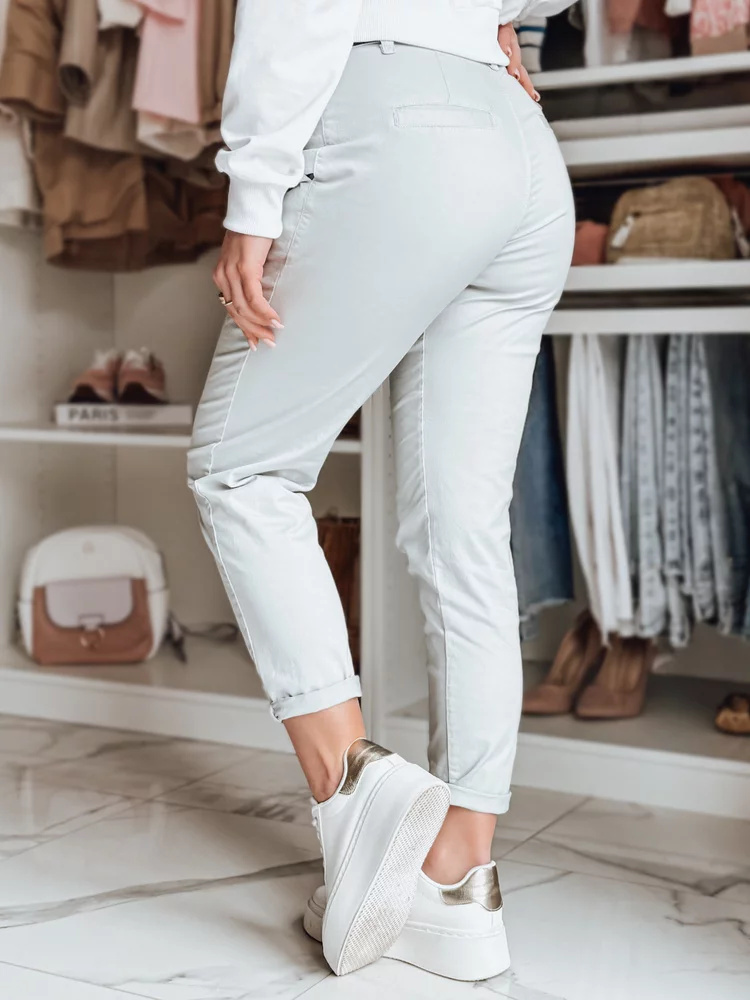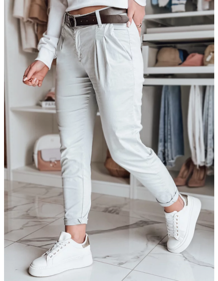 Eleganckie spodnie chinosy materiałowe o dopasowanym kroju, idealne do casualowych i bardziej formalnych stylizacji. Posiadają średni stan oraz ozdobne kieszenie z przodu. Pasek w zestawie podkreśla talię i dodaje wyrazistości. Zapięcie na guzik i zamek gwarantuje komfort noszenia. Świetnie komponują się z koszulą i sneakersami, tworząc modny, miejski look.