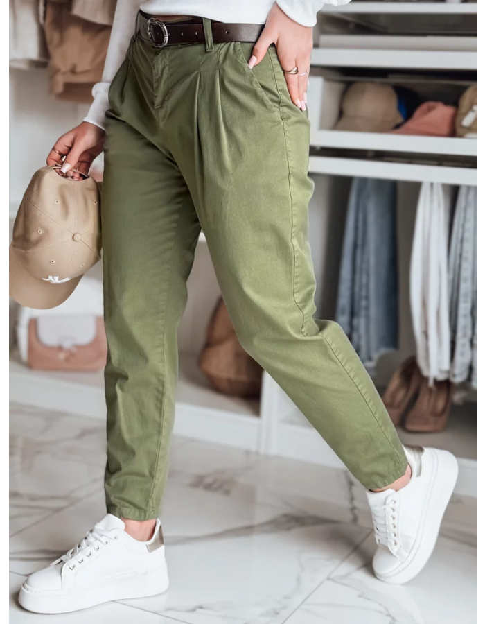 Eleganckie spodnie chinosy materiałowe o dopasowanym kroju, idealne do casualowych i bardziej formalnych stylizacji. Posiadają średni stan oraz ozdobne kieszenie z przodu. Pasek w zestawie podkreśla talię i dodaje wyrazistości. Zapięcie na guzik i zamek gwarantuje komfort noszenia. Świetnie komponują się z koszulą i sneakersami, tworząc modny, miejski look.
