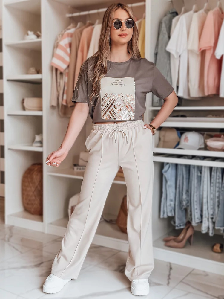 Spodnie damskie dresowe DRESSANIK UY2702 jasnobeżowe
