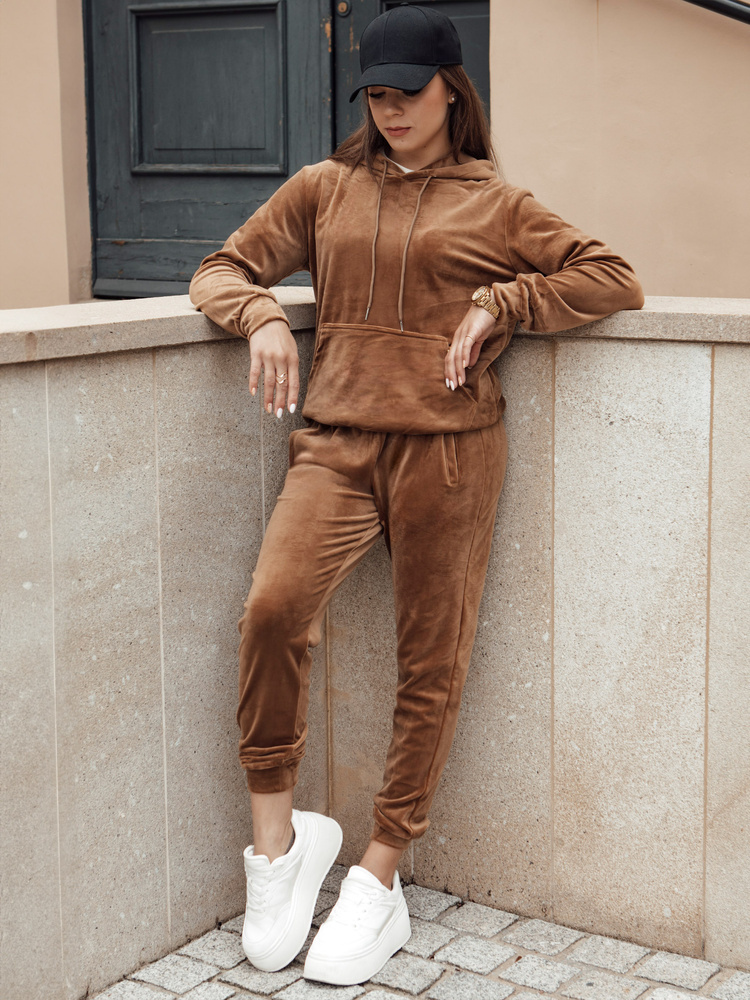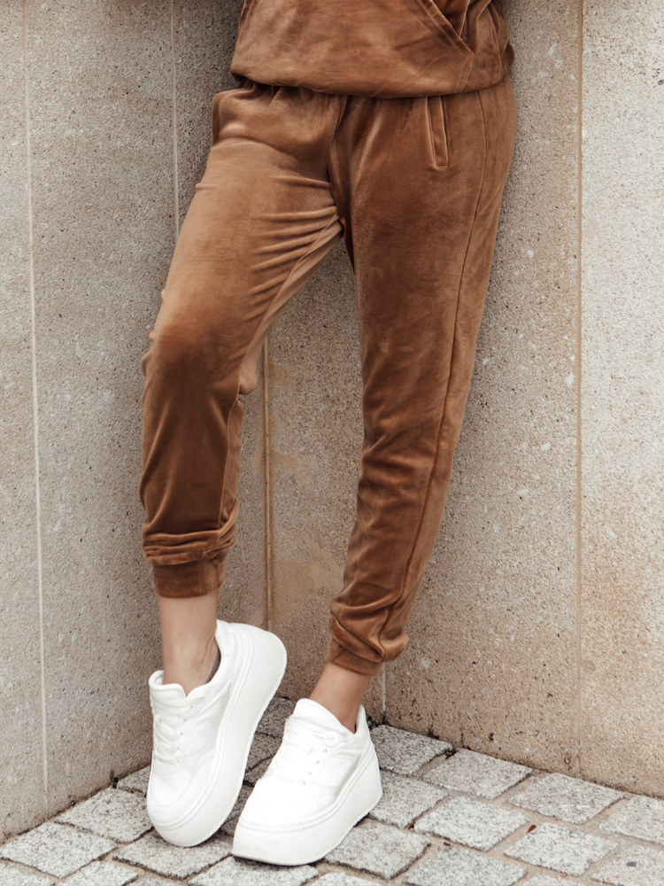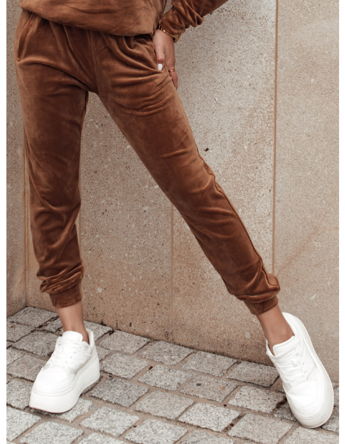 Spodnie damskie dresowe welurowe UY2838 brązowe