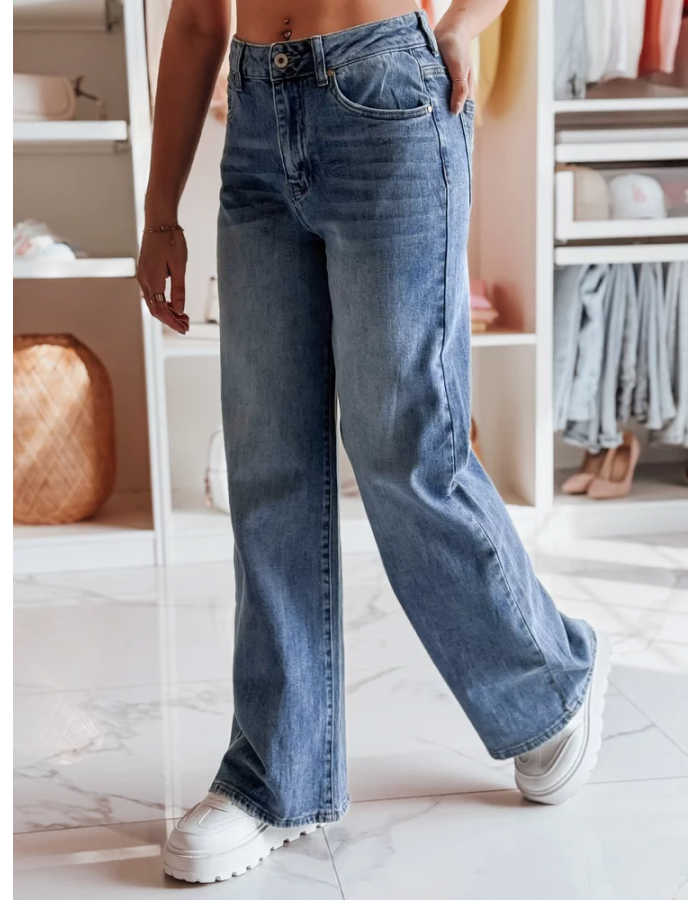 Jeansowe spodnie baggy z wysokim stanem to modna alternatywa dla klasycznych rurek i prostych fasonów. Luźna nogawka w połączeniu z dopasowaną talią tworzy efektowną sylwetkę i przyciąga wzrok. Model zapinany na guzik i zamek, wyposażony w cztery klasyczne kieszenie. Doskonałe na wiosnę – do sneakersów, klapek, a nawet cięższych botków.