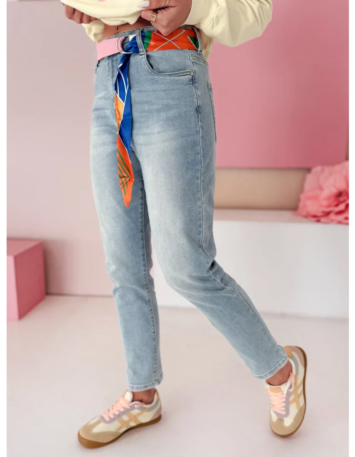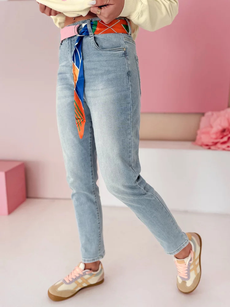 Jeansowe spodnie mom fit, które łączą styl i wygodę. Wysoki stan podkreśla talię oraz wydłuża optycznie nogi, a luźniejszy fason zapewnia swobodę ruchów. Klasyczne, ozdobne kieszenie dodają uroku. Idealne do casualowych i miejskich looków, sprawdzą się w wielu modowych kombinacjach.