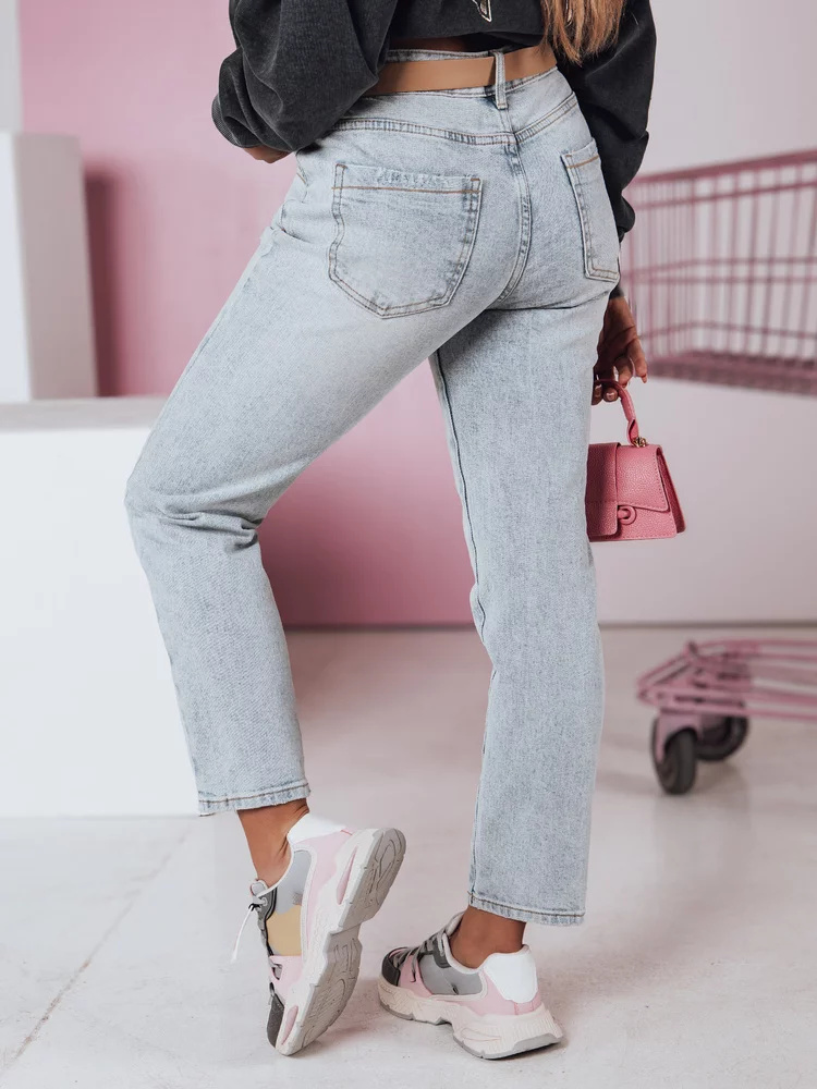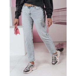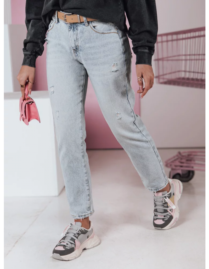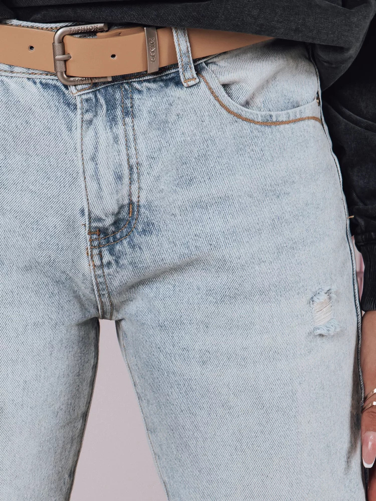 Klasyczne jeansy o prostym kroju z paskiem w zestawie. Wysoki stan wydłuża nogi, a przetarcia na nogawkach dodają temu modelu charakteru. Wykonane z trwałego materiału, który zapewnia komfort przez cały dzień. Uniwersalny fason doskonale komponuje się z każdą stylizacją.