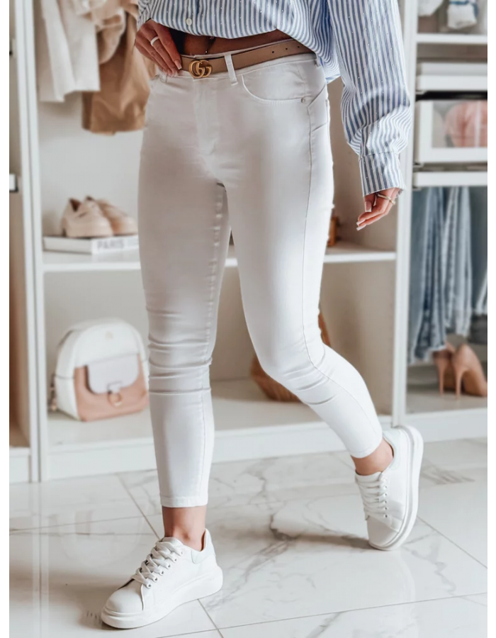 Damskie jeansy skinny z niskim stanem to doskonała propozycja dla miłośniczek dopasowanych fasonów. Ozdobne kieszenie i zapięcie na guzik z zamkiem gwarantują wygodę, a długość 7/8 subtelnie podkreśla kostki oraz optycznie wyszczupla nogi. Idealne do casualowych i eleganckich stylizacji, świetnie komponują się zarówno ze sneakersami, jak i szpilkami.