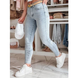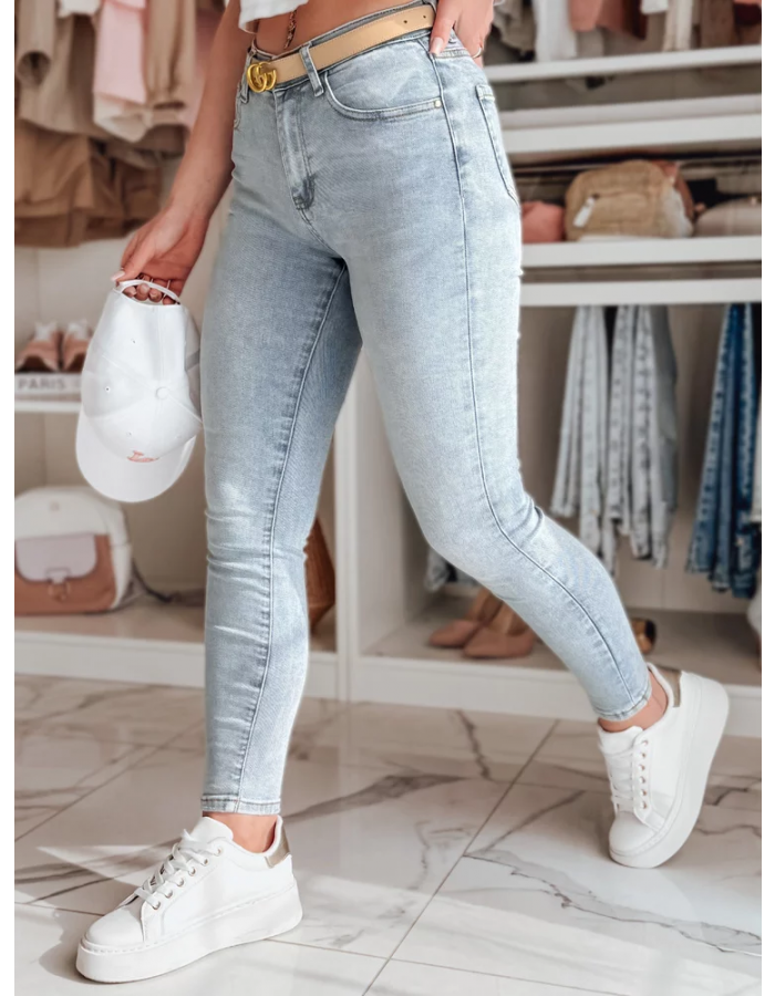 Dopasowane spodnie jeansowe skinny, które idealnie podkreślają sylwetkę oraz optycznie wyszczuplają nogi. Zapinane na klasyczny zamek i guzik, posiadają średni stan i efekt push-up. Elastyczny materiał zapewnia komfort noszenia przez cały dzień, a klasyczne kieszenie dodają uroku. Idealne do casualowych i eleganckich stylizacji.